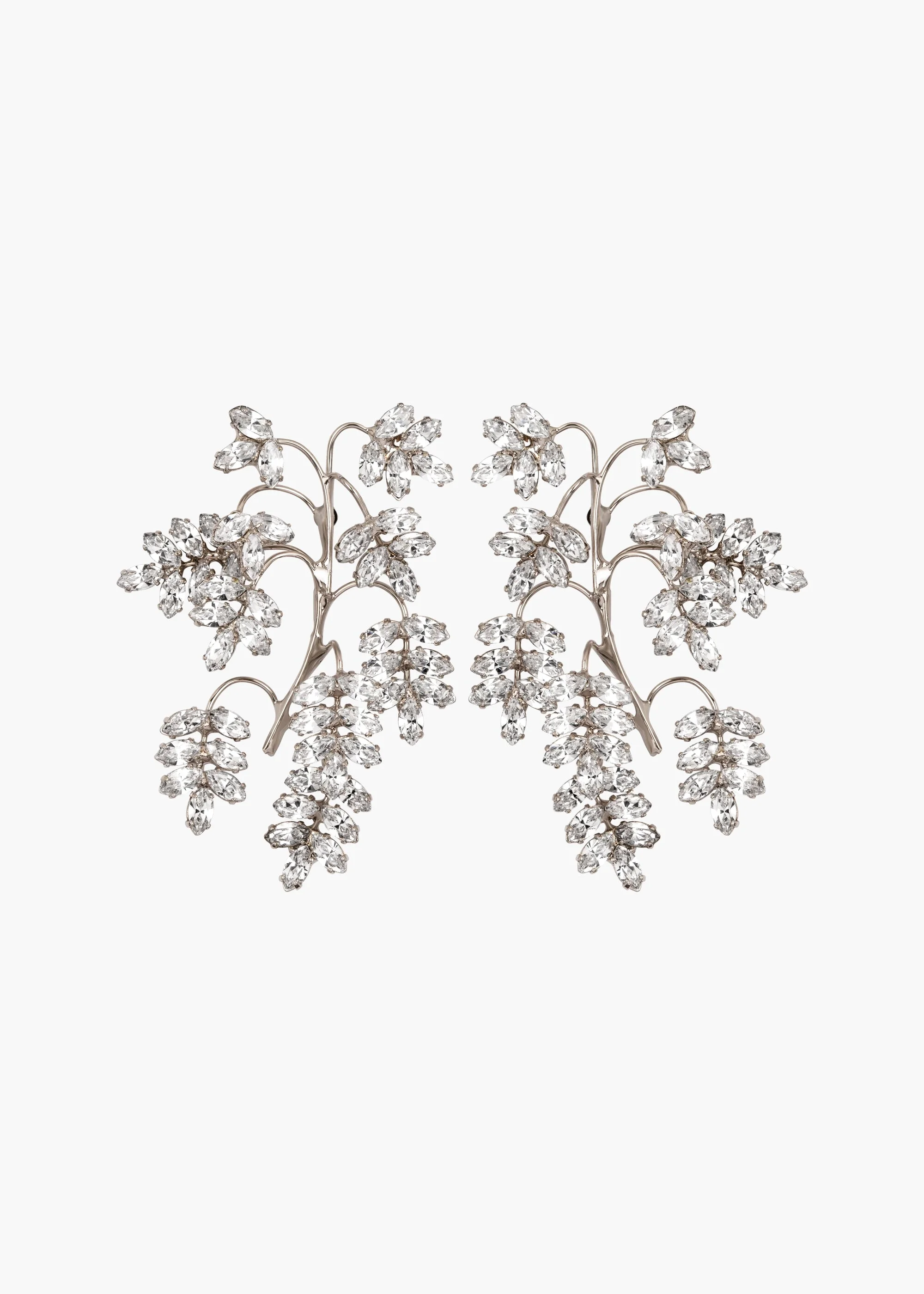 The Raquel Earrings emulate a climbing wisteria vine, leaving innovative artistry on full display. The sculptural arrangement is specifically designed to frame the face, while dozens of fine Austrian crystals generate endless sparkle. Made by hand in New York, the delicate rhodium-plated setting is hand-formed to create an organic shape. Material The Raquel Earrings are made by hand in New York from rhodium plated brass and Austrian crystals. They have a surgical-steel post, are nickel-free, and safe for sensitive skin. We recommend storing earrings in their dust bag while not in use, and avoiding contact with water, perfume, hairspray, and other chemicals.