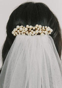 Made by artisans in a process where pearls are individually wired by hand, the Regan Comb creates the effect of effervescent pearls organically frothing like seafoam. It can be styled in a chignon, slipped into a French twist, tucked in the side of the hair, or worn to finish the look of a veil. Pair with our best-selling Perlita Earring, and layer the Dalila Hairpins for a more dramatic look. Dimensions: 3” in height, 8.5” in length. Material The Reagan Comb is bursting with Swarovski pearls in an elegantly timeless arrangement, on a steel comb, which is designed to stay firmly in place, once other pins have the hairstyle securely fastened. We recommend treating this comb as you would a piece of jewelry, and storing in the dust bag when not in use. Avoid contact with water, perfume, and other chemicals, including hairspray, which should be used before placement in the hair.