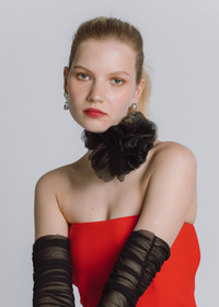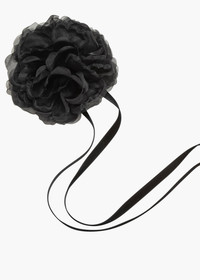 The Rian Ribbon Tie is proof that adding a single statement accessory can instantly create an unforgettable look. Made by hand in New York, the silk flower is expertly sculpted, with diaphanous volume that leaves all eyes on you. It secures with a velvet ribbon, ensuring a precise fit, with the flexibility to wear it a number of ways. Dimensions: 55 inch length Material The Rian Ribbon Tie is made by hand in New York of a handmade silk organza and chiffon flower on a satin faced rayon velvet ribbon tie. We recommend storing this piece in its dust bag when not in use. Avoid contact with water, perfume, and other chemicals, including hairspray, which should be used before placement in the hair or on the body.