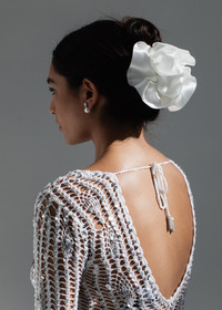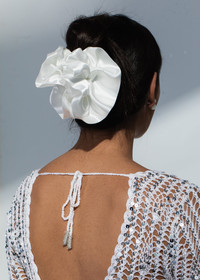 The Satin Ruffle Jaw Clip adds a welcome touch of vibrance to an otherwise effortless hairstyle. The double face silk satin ribbon is draped by hand in our Brooklyn studio to create a ruffle with matchless volume, for on-the-go moments and special occasions alike. It’s anchored by a sturdy acrylic jaw clip, making it possible to style a number of ways, and suitable for all hair types and textures. Material The Satin Ruffle Jaw Clip is made by hand in New York of silk ribbon with an acrylic resin claw clip. We recommend treating this clip as you would a piece of jewelry, and storing in the dust bag when not in use. Avoid contact with water, perfume, and other chemicals, including hairspray, which should be used before placement in the hair.