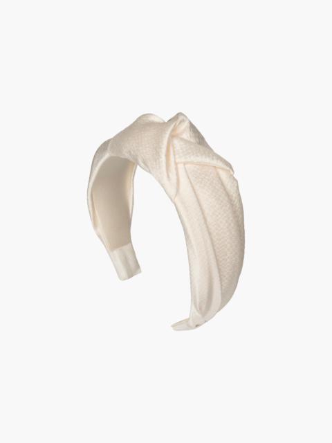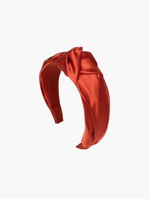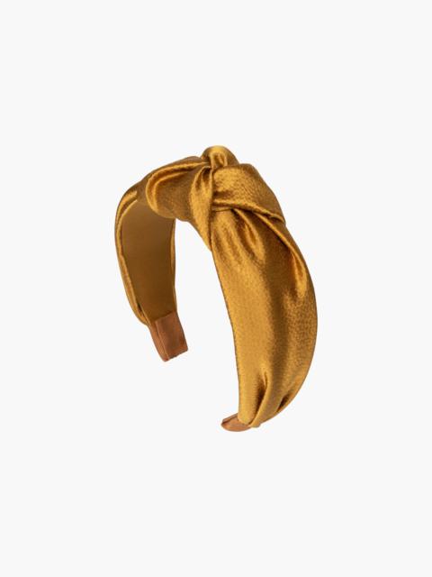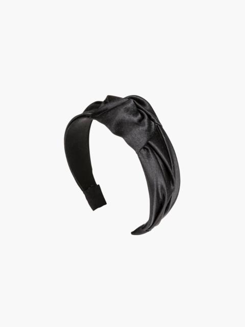 The Samaya Headband in Hammered Silk reimagines the iconic Jennifer Behr knotted shape, in lush hammered silk. Crafted by hand in our Brooklyn studio, the fabric is masterfully draped by hand to achieve the perfect flattering shape. The look is grounded by a flexible headband base, designed for lasting comfort. Dimensions: 2.25 inches wide, 0.5 inches padding Material This Samaya Headband is made in New York from Italian silk, and lined in silk to ensure ultimate comfort and promote hair health. We recommend storing headbands in their dust bag while not in use. Avoid contact with water, perfume, and other chemicals, including hairspray, which should be used only before placement in the hair.