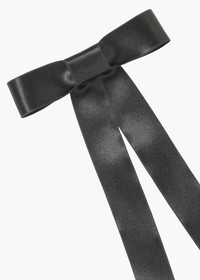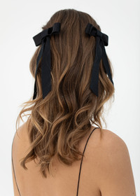 An instant classic, the Sasha Bow Barrette is an essential addition to any collection. Made by hand in New York, the simple design is underscored by skillful hand-craftsmanship, using the finest of silk. It's complete with an automatic French barrette closure for easy placement in any style, and any hair type. Material The Sasha Bow Barrette is made by hand in New York of silk ribbon and finished with a steel French barrette closure. We recommend treating this bow as you would a piece of jewelry, and storing in the dust bag when not in use. Avoid contact with water, perfume, and other chemicals, including hairspray, which should be used before placement in the hair.