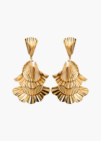 A wearable work of art, the Sereia Earrings take their inspiration from naturally elegant Ginkgo leaves. Made in New York, their rippled 18-karat gold-plated surface is sculpted by hand in a time-intensive process that creates awe-inspiring dimension. The graceful movement of their gleaming surface further magnifies the beauty of their construction. Dimensions: 4.5 inch length Material The Sereia Earrings are made by hand in New York from 18K gold plated brass. They have a surgical-steel post, are nickel-free and safe for sensitive skin. We recommend storing earrings in their dust bag while not in use, and avoiding contact with water, perfume, hairspray, and other chemicals.