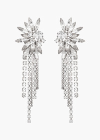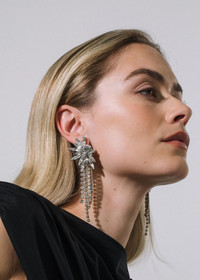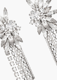 Featuring a graphic crystal starburst with cascading fringe, the Shantalle Earrings leave all eyes on you. Made by hand in New York of fine Austrian crystals, the brilliant spears frame the face in a halo of light. The crystal chain fringe adds movement for endless drama. Material The Shantalle Earrings are made by hand in New York from Austrian crystals and rhodium plated brass. They have a surgical-steel post, are nickel-free and safe for sensitive skin. We recommend storing earrings in their dust bag while not in use, and avoiding contact with water, perfume, hairspray, and other chemicals.