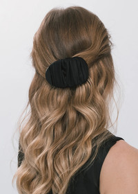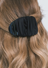 The Tasha Jaw Clip is an ultra-sophisticated update to the endlessly wearable jaw clip. Made by hand in New York, silk charmeuse is hand-draped over a flat claw clip. The claw clip sits flush to the head, making it comfortable to rest your head against a seat. Dimensions: 2 3/8in x 3 3/4in Material The Tasha Jaw Clip is made by hand in New York of hand-draped silk charmeuse, with a flat acrylic resin claw clip base. We recommend treating this clip as you would a piece of jewelry, and storing in the dust bag when not in use. Avoid contact with water, perfume, and other chemicals, including hairspray, which should be used before placement in the hair.