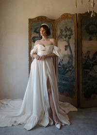 This is how Jennifer Behr does the classic padded headband, one of our best-selling silhouettes. This Tori Headband is crafted from silk, creating a rich luster. We take fit seriously, and our headbands are wear-tested to be comfortable all day. Dimensions: 1 inch width, 1 inch height. Overall 5.9 x 5.5 inches Material The Tori Headband is made by hand in New York from silk and lined in grosgrain to ensure ultimate comfort and promote hair health. We recommend storing headbands in their dust bag while not in use. Avoid contact with water, perfume, and other chemicals, including hairspray, which should be used only before placement in the hair.