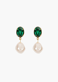 Playful, yet refined, the Tunis Earring offers punchy, saccharine hues, offset with a baroque-shaped glass pearl, which gives this piece incredible movement. Material The Tunis Earring is a post earring with a surgical-steel post. Our earrings are nickel-free and safe for sensitive skin. This earring is crafted in New York from 18K gold plated brass, glass crystals, and glass pearl. We recommend storing earrings in their dust bag while not in use, and avoiding contact with water, perfume, hairspray, and other chemicals.