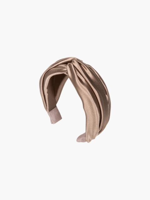 Living up to its name, the Twist Headband resembles a chic turban with flattering twisted volume on top, on a comfortable headband base that's easy to wear on any type or length of hair. This silk satin version features an updated palette in a fabric that is utterly luminous. We're always proud of the fit of our headbands, which are comfortable to wear for hours at a time and never pinch. Dimensions: 2 inch width Material The Twist Headband in Silk Satin is made by hand in New York from silk satin, and lined in silk to ensure ultimate comfort and promote hair health. The headband tips are wrapped in silk grosgrain, making it comfortable to wear. We recommend storing headbands in their dust bag while not in use. Avoid contact with water, perfume, and other chemicals, including hairspray, which should be used only before placement in the hair.