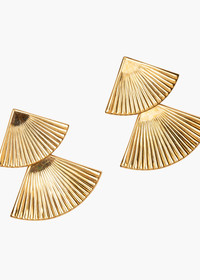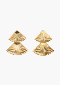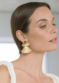The Vanna Earrings cleverly draw upon both geometric Art Deco design and the organic waves of the ocean. The combination of the earring's graceful ripples, and the radiant gold finish catches the light brilliantly. In a goes-with-anything golden hue, these comfortable earrings instantly elevate any look. Material The Vanna Earring is a post earring with a surgical-steel post. Our earrings are nickel-free and safe for sensitive skin. These earrings are made by hand in New York from 18K antique gold plated brass. We recommend storing earrings in their dust bag while not in use, and avoiding contact with water, perfume, hairspray, and other chemicals.