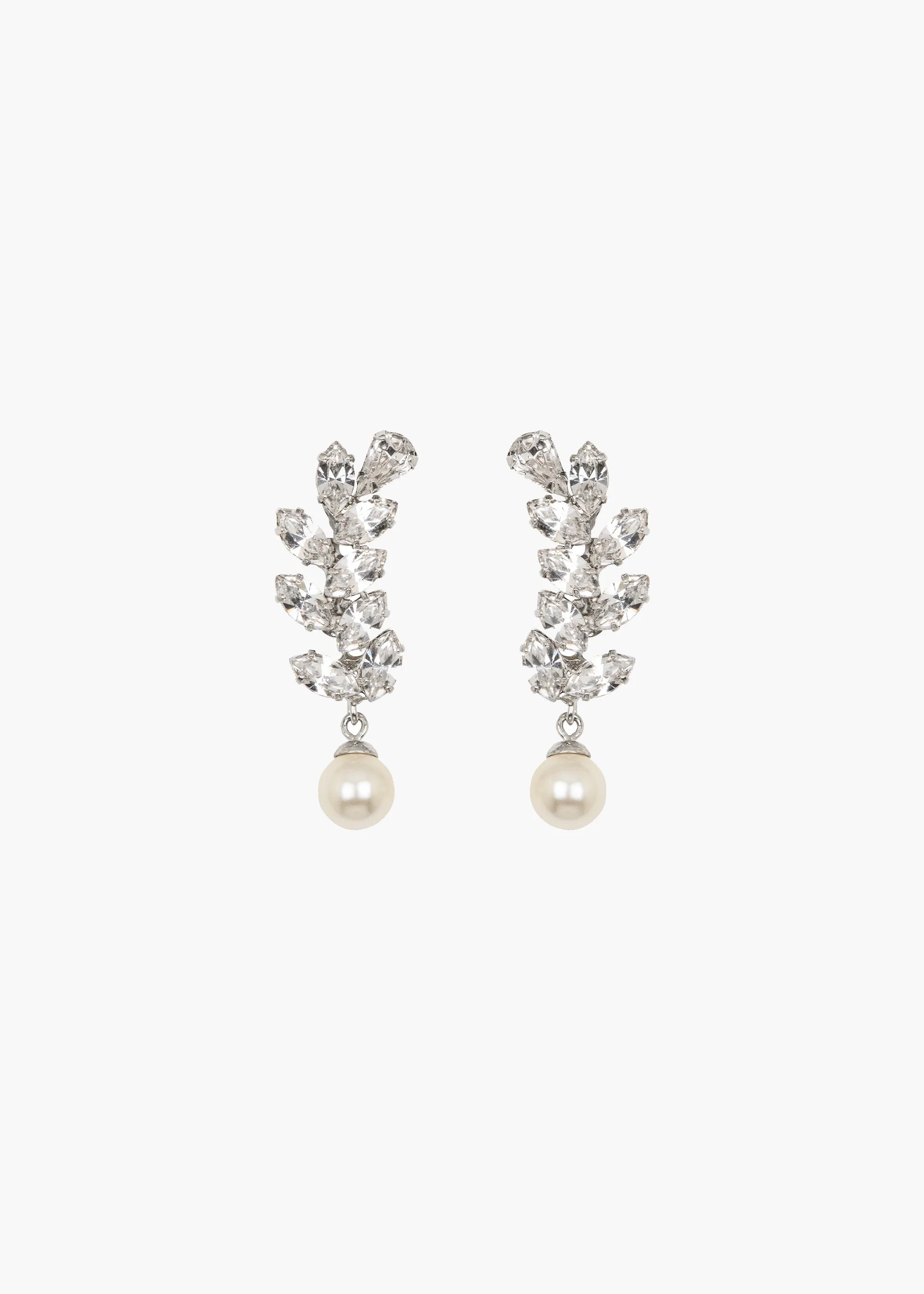 Strike an air of elegance in the Verla Earrings. Their drop forms a subtle serpentine shape, framing the face with a flattering glow. Made by hand in New York, the individually-set fine crystals create a blinding sparkle, while the pearl drop catches the light as it sways gently. Material The Verla Earrings are made by hand in New York, from rhodium plated brass, crystals, and crystal pearls. They have a surgical-steel post, are nickel-free, and safe for sensitive skin. We recommend storing earrings in their dust bag while not in use, and avoiding contact with water, perfume, hairspray, and other chemicals.