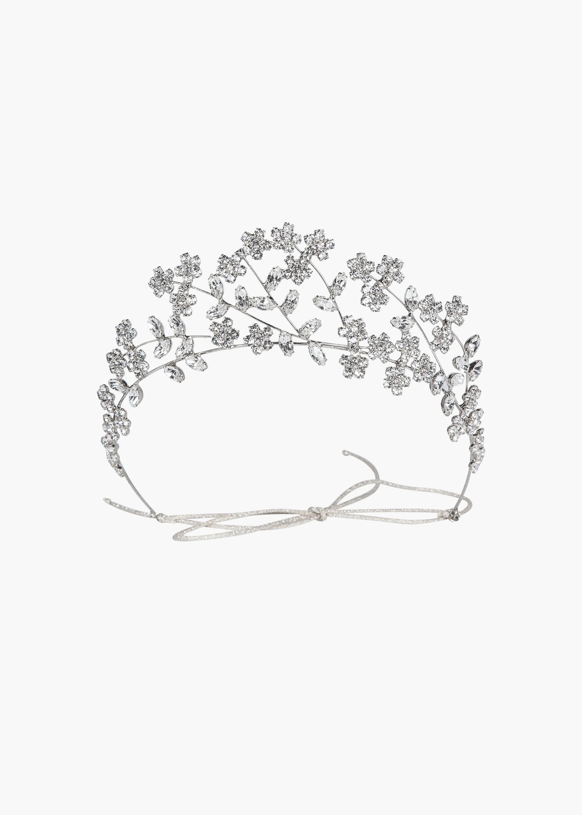 Mirror, mirror, on the wall... in the Violet Tiara, anyone is queen for the day... or as long as it's on the head! Intricately hand-made vines of Swarovski crystal flowers complete this spectacular tiara. All eyes on you! Pair with the matching Violet Stud Earrings . Material N/A