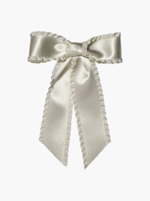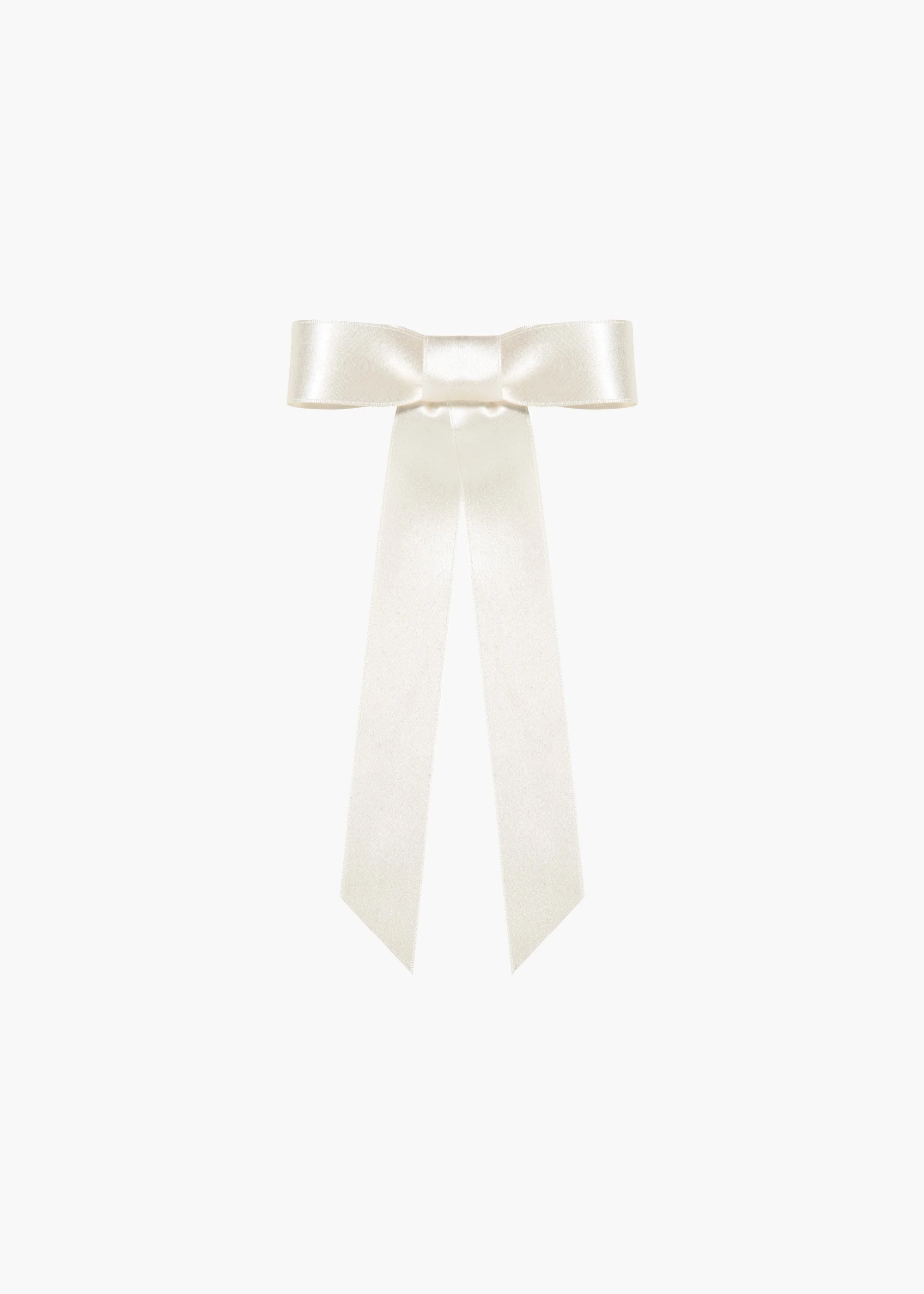 An instant classic, the Sasha Bow Barrette is an essential addition to any collection. Made by hand in New York, the simple design is underscored by skillful hand-craftsmanship, using the finest of silk. It's complete with an automatic French barrette closure for easy placement in any style, and any hair type. Material The Sasha Bow Barrette is made by hand in New York of silk ribbon and finished with a steel French barrette closure. We recommend treating this bow as you would a piece of jewelry, and storing in the dust bag when not in use. Avoid contact with water, perfume, and other chemicals, including hairspray, which should be used before placement in the hair.