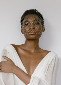 We added petite Swarovski crystals to one of our bestselling pieces, the Voilette, for a party-ready upgrade. Each Swarovski crystal is hand-stiched to the French veiling in our Brooklyn studio. The sparkles on this version enhances the airbrushing effect that erases all wrinkles and blemishes from the face, and the sparkles on this version enhance that even further. Try this piece for your next black tie affair. Handmade in New York City. Material Handmade in New York City.