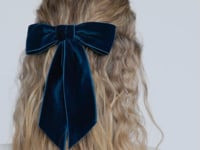 The Wide Velvet Bow Barrette is the larger sister of our classic Velvet Bow Barrette . Handmade in our Brooklyn studio, it features thick satin-edged silk velvet ribbon and a French barrette closure, making it easy to wear a multitude of ways, in any type of hair. This bow is a timeless addition to your hair collection. Dimensions: 6 x 9 inches Weight: 19g Material The Wide Velvet Bow Barrette is made by hand in New York of silk velvet ribbon with a steel French barrette closure. We recommend treating this bow as you would a piece of jewelry, and storing in the dust bag when not in use. Avoid contact with water, perfume, and other chemicals, including hairspray, which should be used before placement in the hair.