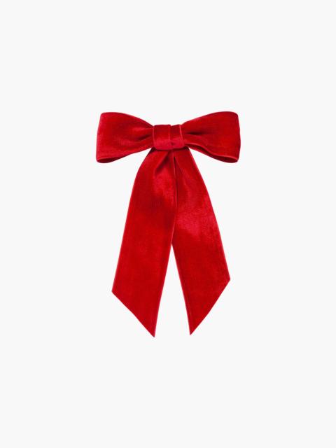 The Wide Velvet Bow Barrette is the larger sister of our classic Velvet Bow Barrette . Handmade in our Brooklyn studio, it features thick satin-edged silk velvet ribbon and a French barrette closure, making it easy to wear a multitude of ways, in any type of hair. This bow is a timeless addition to your hair collection. Dimensions: 6 x 9 inches Weight: 19g Material The Wide Velvet Bow Barrette is made by hand in New York of silk velvet ribbon with a steel French barrette closure. We recommend treating this bow as you would a piece of jewelry, and storing in the dust bag when not in use. Avoid contact with water, perfume, and other chemicals, including hairspray, which should be used before placement in the hair.