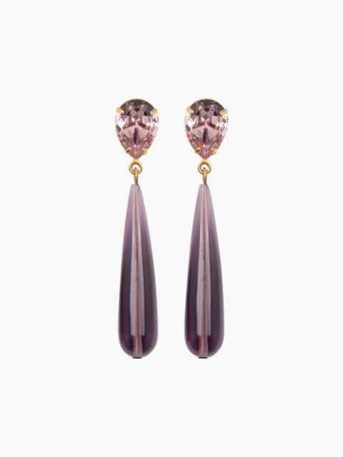 An incredibly memorable drop earring, the Xiomara Earrings are a celebration of natural semi-precious stones. Made by hand in New York in an 18-karat gold-plated setting, the cabochon gemstones (carnelian, tiger's eye, malachite or lapis lazuli) are large enough to highlight the idiosyncrasies that make each stone unique, from the variations in color to the veining, underscoring a pattern forged by nature. Standing in contrast to the organic beauty of the semi-precious material is a perfect emerald-cut Austrian crystal. Dimensions: 2in x 7/8in Material The Xiomara Earrings are made by hand in New York from 18K gold plated brass and Austrian crystals with natural semi-precious stone drops. All stones have natural variances in color and markings that make each one unique. They have a surgical-steel post, are nickel-free, and safe for sensitive skin. We recommend storing earrings in their dust bag while not in use, and avoiding contact with water, perfume, hairspray, and other chemicals.