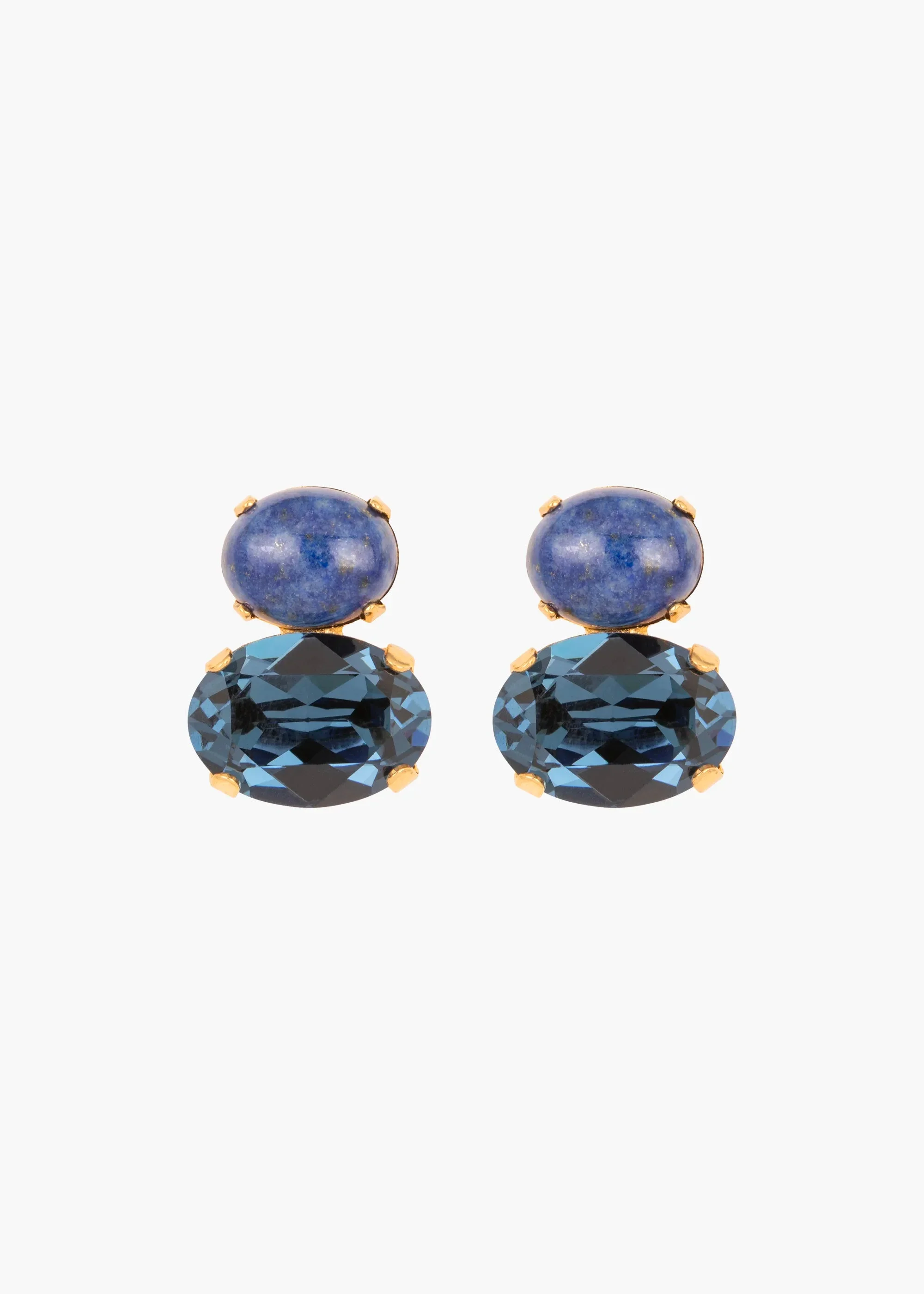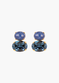 The Yvette Earrings combine gorgeously faceted crystals with semi-precious gemstones to create a harmonious tonal palette. They feature either semi-precious blue lace agate, a highly prized stone naturally formed in seabeds, known for its association with the throat chakra, promoting calm, clear communication or semi-precious chalcedony, which is known as a grounding stone for its ability to promote calmness and inner peace. . These delicate earrings pair seamlessly with anything. Dimensions: 0.75 inch length Material The Yvette Earrings are made by hand in New York from semi-precious stone elements and Czech crystals. All stones have natural variances in color and markings that make each one unique. They have a surgical-steel post, are nickel-free and safe for sensitive skin. We recommend storing earrings in their dust bag while not in use, and avoiding contact with water, perfume, hairspray, and other chemicals.