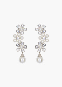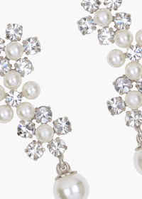 Inspired by daisies, our favorite harbingers of spring, the Zaya Earrings are a charming floral garland. Alternating Czech crystals and pearls form these flowers, the contrasting materials allowing the shapes to pop— and match a wide range of other jewels. Made in New York, these earrings are specifically designed to frame the face with hand-placed stones. Dimensions: 2" in length. Material The Zaya Earrings are made by hand in New York, from 18K gold or rhodium plated brass, crystals, and crystal pearls. They have a surgical-steel post, are nickel-free, and safe for sensitive skin. We recommend storing earrings in their dust bag while not in use, and avoiding contact with water, perfume, hairspray, and other chemicals.