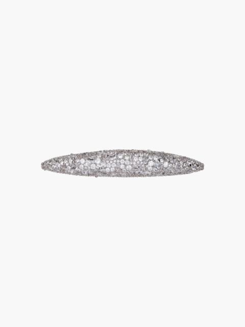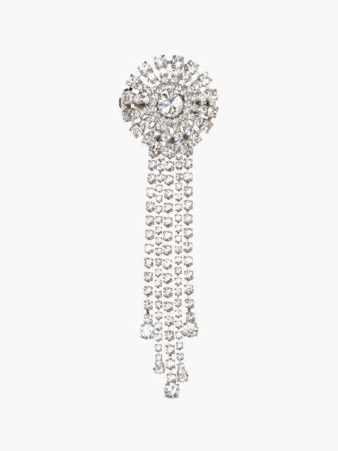 A hair accessory as chic as it is fun to wear as it, the Zelina Barrette is a nod to Art Deco architecture. Made by hand in New York, Austrian crystals form a radial firework, with cascading crystal fringe that moves with you. It is finished with an automatic French barrette closure, for easy placement in a range of hairstyles. Dimensions: 4.75" x 1.25" Material The Zelina Barrette is handmade in New York of Austrian crystals with a steel French barrette closure plated in rhodium. We recommend treating the barrette as you would a piece of jewelry, and storing it in the dust bag when not in use. Avoid contact with water, perfume, and other chemicals, including hairspray, which should be used before placement in the hair