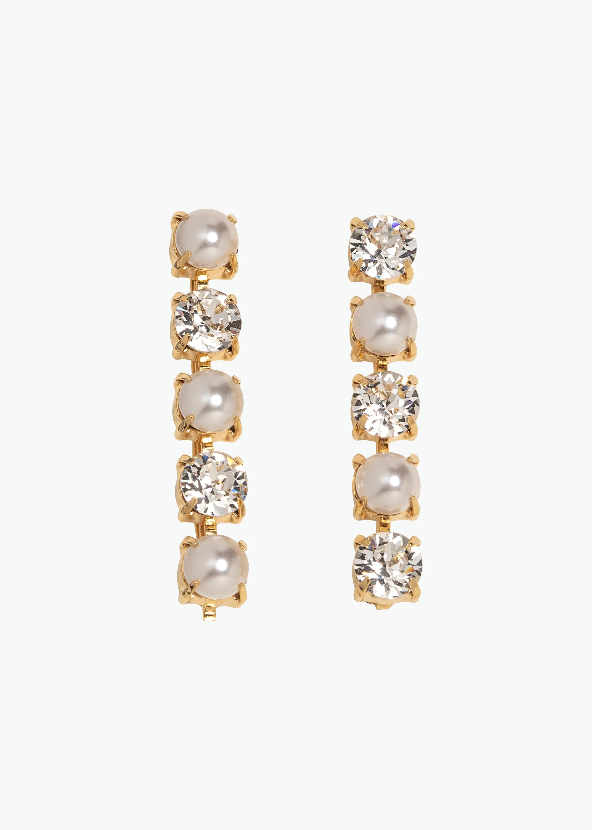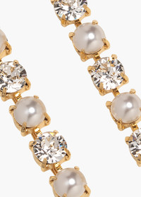 The Zina Bobby Pin Set is a fresh set of two bobby pins that will stylishly complete any ensemble. These linear pins are set with alternating fine crystal and pearl details, on a sturdy bobby pin designed to stay firmly in place, no matter hairstyle. The classic combination of crystal and pearl encourages this set to be layered with a variety of other bobby pins, such as our Perla Bobby Pin Set and Brenna Bobby Pin Set. Material The Zina Bobby Pins are a set of two, made in New York of Austrian crystals and crystal pearls on 18K gold plated brass. These durable bobby pins are designed to stay firmly in place, once other pins have the hairstyle securely fastened. We recommend treating each pin as you would a piece of jewelry, and storing in the dust bag when not in use. Avoid contact with water, perfume, and other chemicals, including hairspray, which should be used before placement in the hair.