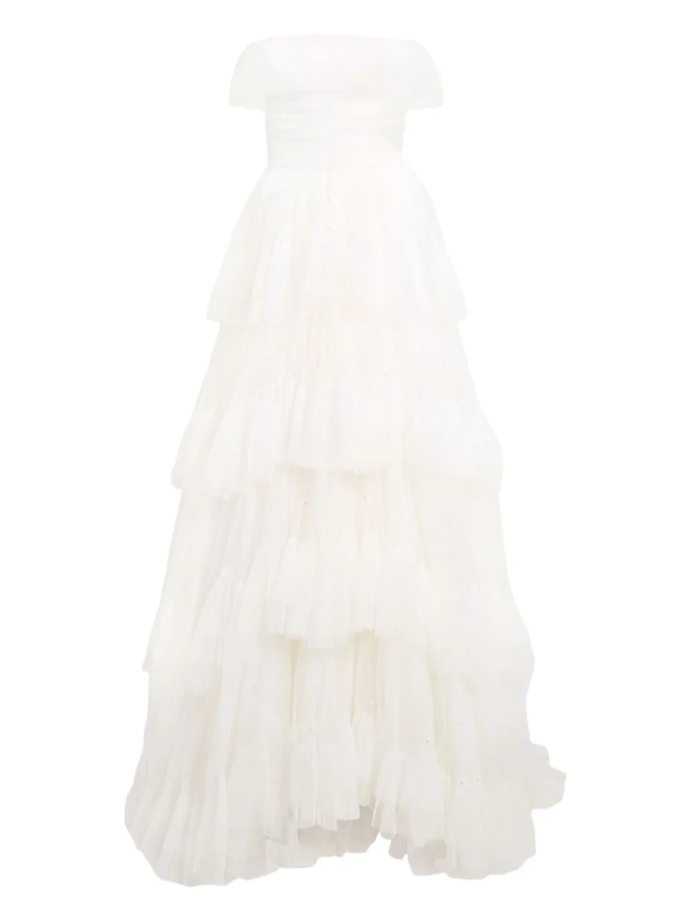 Angel Falls tiered maxi dress Highlights - White - Tiered design - Off-shoulder detail - Sequins details - Zip fastening Imported Composition Polyester 100% Washing instructions Dry Clean Only