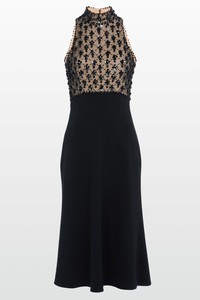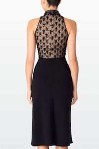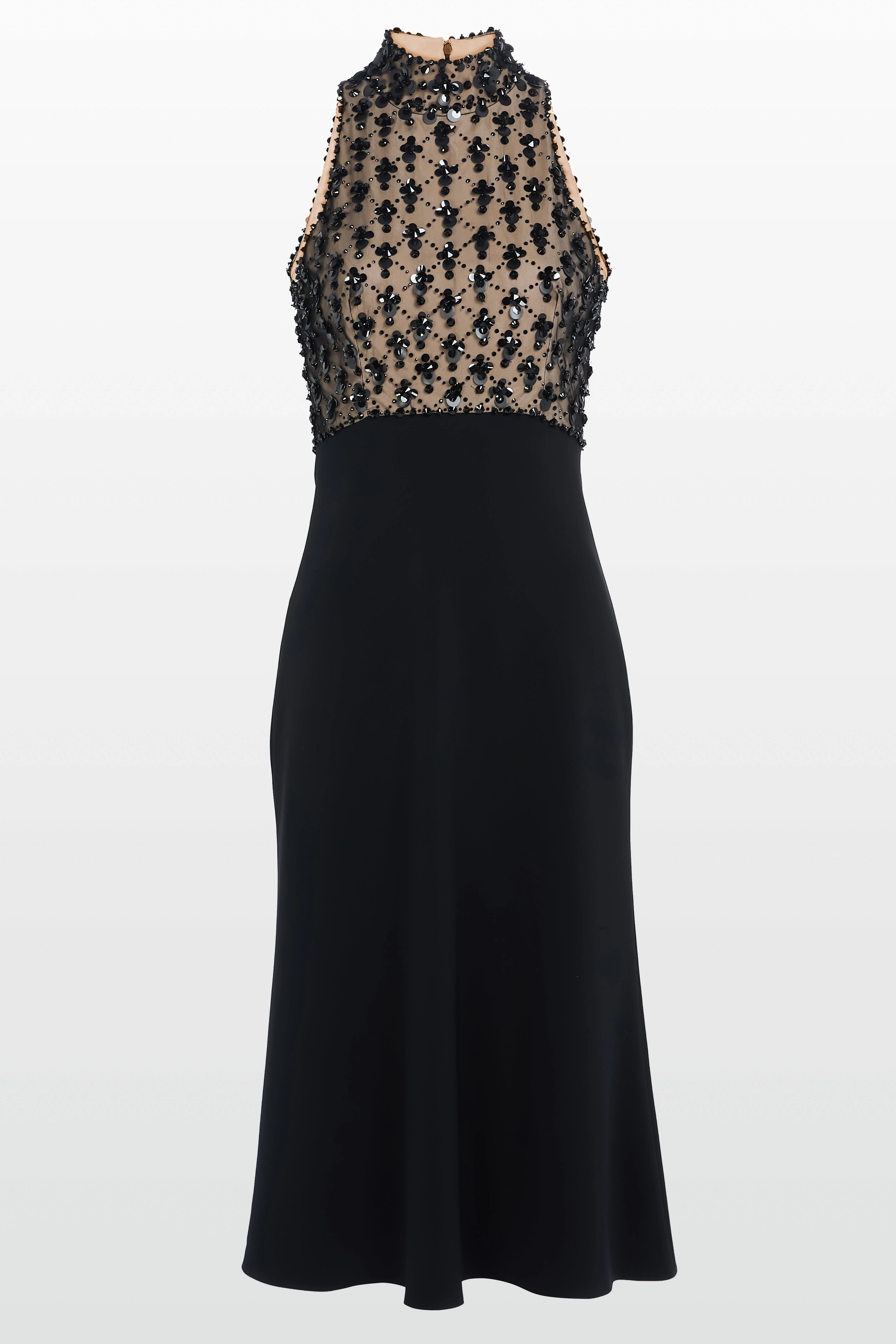 Aurelia is a refined gown that masterfully blends modern structure with ethereal detailing. Featuring a high neckline and sheer tulle bodice, this designer evening dress is subtly embroidered with tonal beading in a contemporary floral motif. The embellishment adds just the right amount of shimmer, maintaining a clean, minimal look while introducing a touch of artistry and texture. The nipped-in waist enhances the feminine shape, leading into a softly flared skirt that moves beautifully with each step. Ideal for elegant evening events, sophisticated dinners, or formal gatherings where polish is essential, Aurelia delivers quiet sophistication with visual interest. Its versatility makes it a go-to gown for women seeking a look that transitions seamlessly from day to night. Whether worn at a high-end fashion event or a curated cultural soiree, this dress embodies a modern sense of grace and quiet impact.