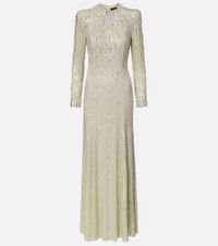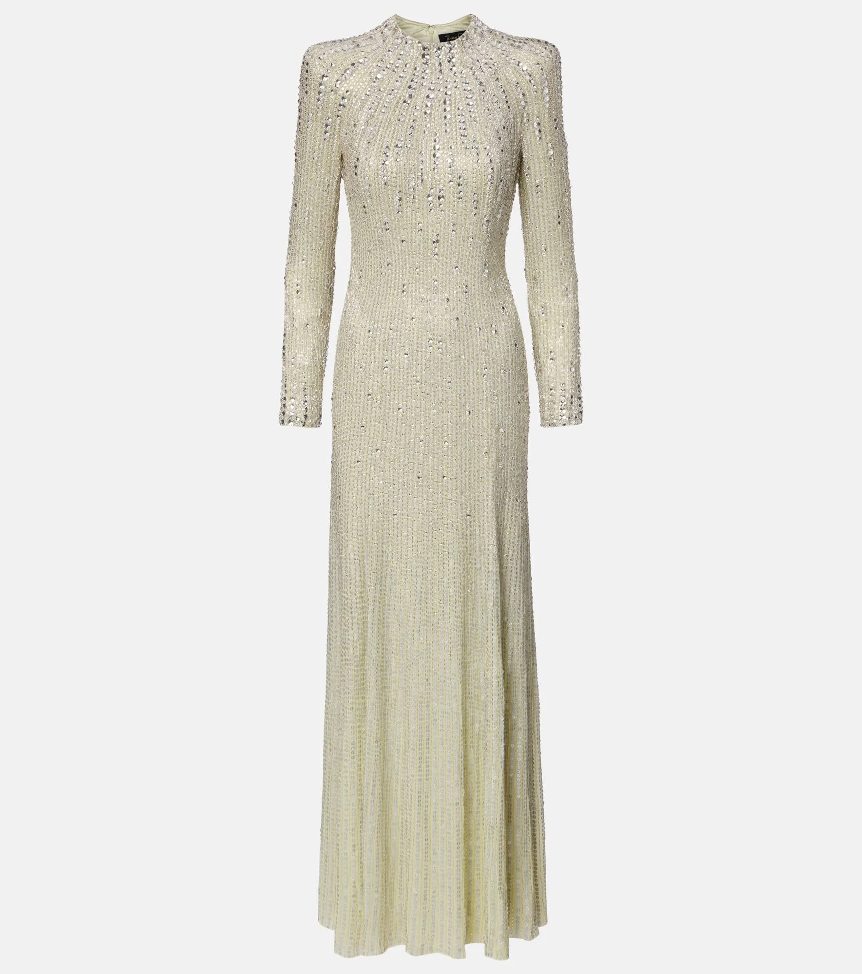 Designed to shine in the spotlight, the Aurora gown by Jenny Packham features a sculpted silhouette, high neckline, and long sleeves. Gracefully placed sequins add a touch of radiance for any evening that calls for an unforgettable impression. Product Details - Material: 100% viscose - Care instructions: specialist clean - Made in India - Designer color name: Citrine - Item color: green - Lining: 95% polyester, 5% elastane - Cuff: zipped - Closure: zipped back - Item number: P01055409 Size & Fit - True to size - Shoulder pad inserts - Cinched waist - Non-stretchy fabric - The model seen in the picture is 178cm-5'10" and wearing a size UK 8