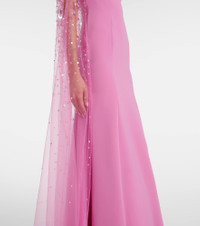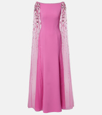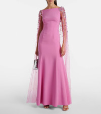 Enriched with romance, Jenny Packham’s intricately embellished designs are made to make an entrance. The Bittersweet gown is elevated by a flowing cape adorned with beads and rhinestones cascading down the back. Product Details - Material: 92% polyester, 8% polyurethane - Care instructions: specialist clean - Made in China - Designer color name: Passion Flower - Item color: pink - Lining: 100% polyester - Collar: cowl neck - Closure: zipped back - Item number: P01055466 Size & Fit - True to size - Cinched waist - Loose outer layer - Non-stretchy fabric - The model seen in the picture is 178cm-5'10" and wearing a size UK 8