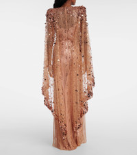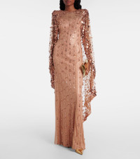 Enriched with romance, Jenny Packham’s intricately embellished designs are made to make an entrance. The Blaize gown captivates with its floor-length silhouette, graceful cape detail, and shimmering crystal embellishments. Product Details - Material: 100% nylon - Care instructions: dry clean - Made in India - Designer color name: Sable - Item color: pink - Lining: 98% polyester, 2% elastane - Shoulder pads - Closure: zipped back - Item number: P01077497 Size & Fit - True to size - Shoulder pad inserts - Low back - Fitted - Loose outer layer - Non-stretchy fabric - The model seen in the picture is 178cm-5'10" and wearing a size UK 8