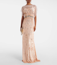 Enriched with romance, Jenny Packham’s intricately embellished designs are made to make an entrance. The Bonnie gown features an elegant tulle overlay at the shoulders and is defined by exquisite sequin detailing for an eye-catching finish. Product Details - Material: 100% nylon - Care instructions: specialist clean - Made in India - Designer color name: Powder Pink - Item color: pink - Lining: 100% nylon - Closure: zipped side - Fully lined - Item number: P01055461 Size & Fit - True to size - Cinched waist - Non-stretchy fabric - The model seen in the picture is 178cm-5'10" and wearing a size UK 8
