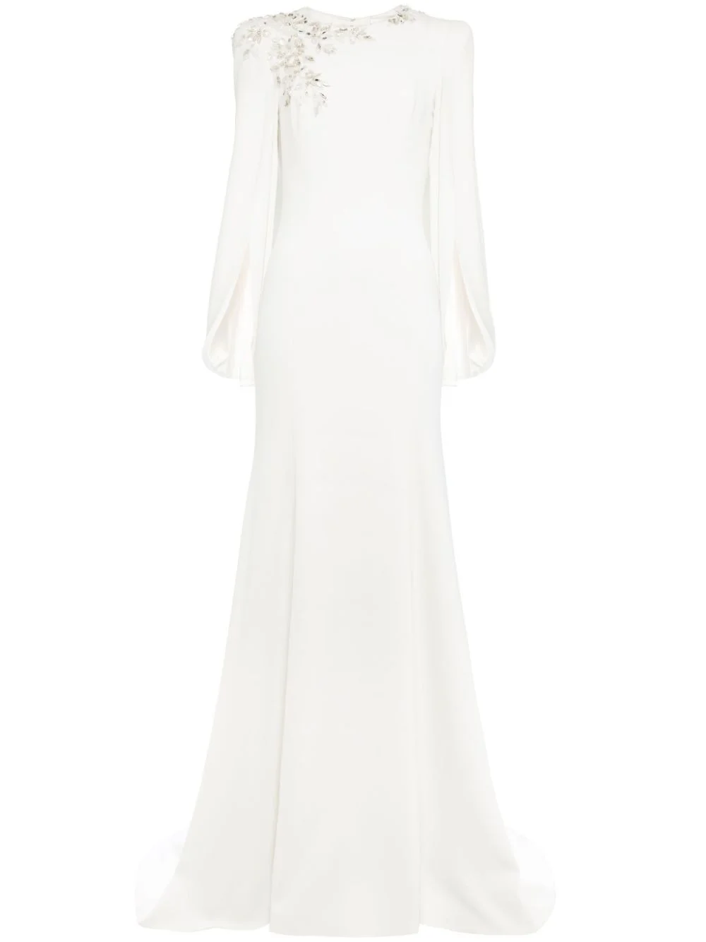 Diera dress Highlights - White - Half-length sleeves - Long length - Flared skirt - Rear zip fastening Imported Composition Polyester 92%, Polyurethane 8% SIZE & FIT Measurement SLEEVE LENGTH 27.16 in(69 cm) HIPS 43.3 in(110 cm) LENGTH 74.01 in(188 cm) WAIST 33.85 in(86 cm)
