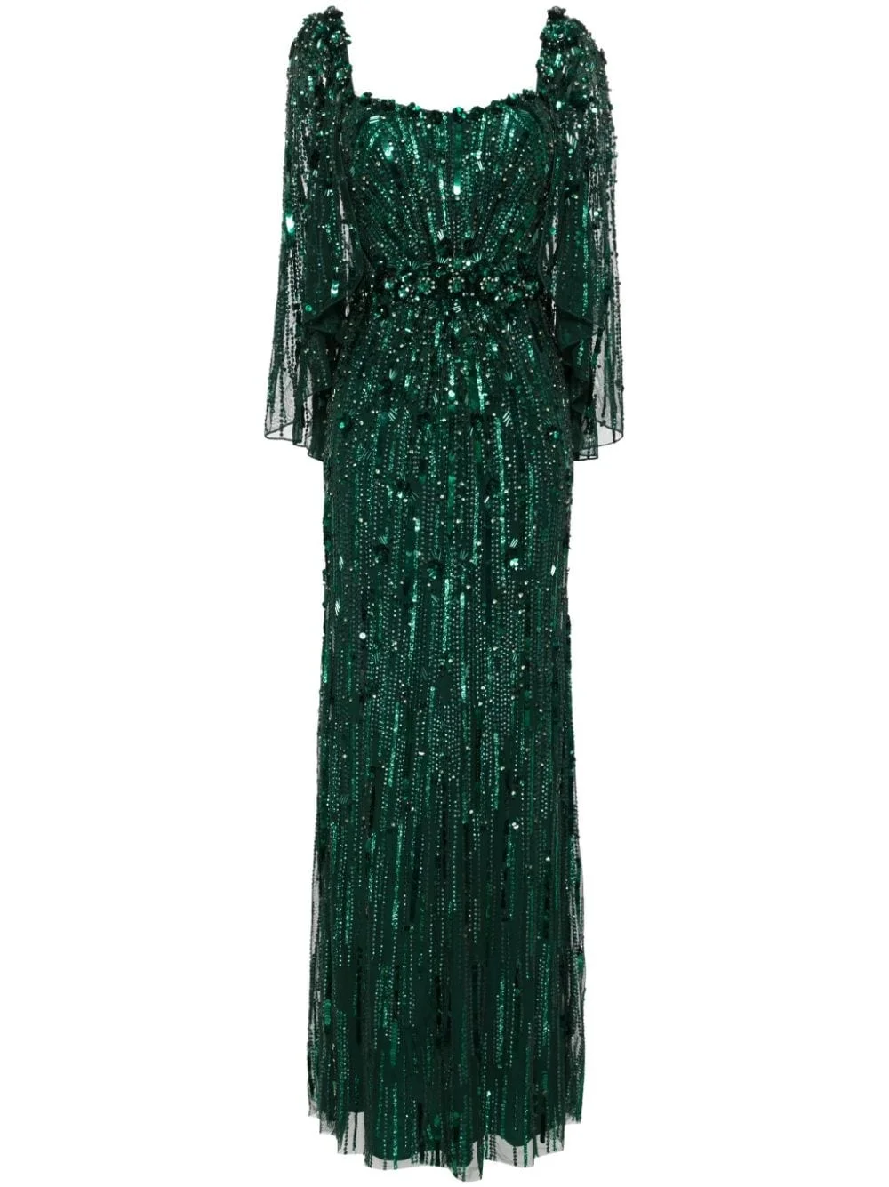 Brightstar sequin-embellished gown Celebrated for high-octane design, Jenny Packham presents the Brightstar gown in a deep green hue. It's saturated with light-catching sequins that spread out from the centre, reminiscent of fireworks. Highlights - Forest green - Sequin embellishment - Bead embellishment - Sweetheart neck - Three-quarter length sleeves - Semi-sheer sleeves - Floor-length Imported Composition Polyester 100% SIZE & FIT Model measurements Height 5 ft 9 in(1.76 m) Bust/Chest 31.1 in(79 cm) Hips 35.03 in(89 cm) Waist 24.4 in(62 cm) FittingInformation Designed for a close fit at the chest and waist with a loose fit at the hip The moulded cups offer shape and support Made from a midweight fabric Washing instructions Dry Clean Only