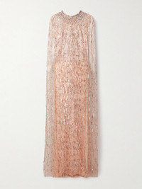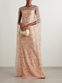 EXCLUSIVE AT NET-A-PORTER. Jenny Packham's gown is part of the brand's exclusive capsule collection, comprised of striking, elegant styles fit for your next event. Cut from sheer tulle, it's embellished with sparkling crystals and sequins and has a dramatic cape-effect back. The pastel-pink shade is inspired by morganite stones.