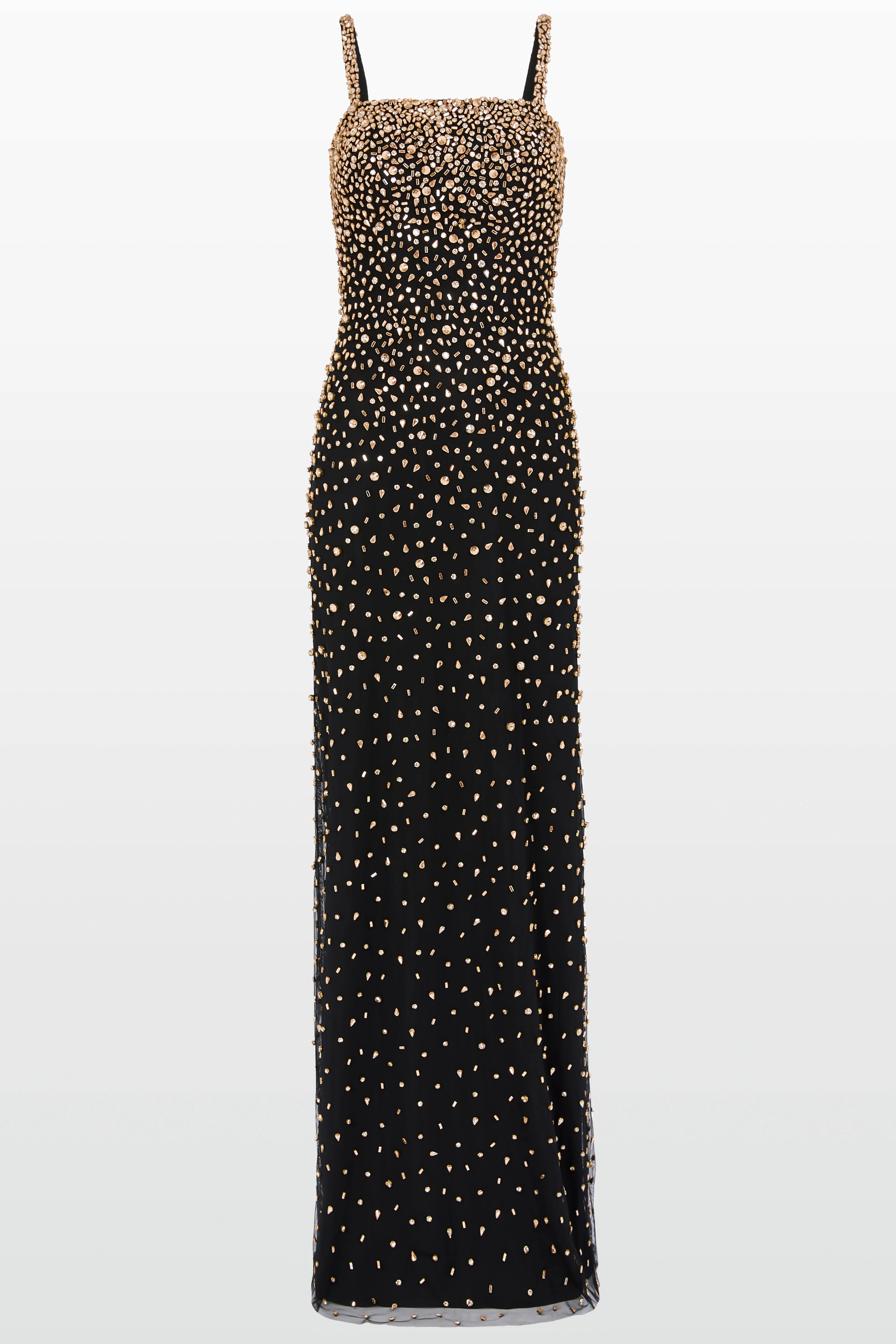A gown that radiates vintage-inspired glamour, the Cherry dress is a show-stopping statement for elegant evenings. Its silhouette is adorned with intricate embellishments, shimmering across the flowing fabric to evoke a sense of movement and timeless appeal. The delicate embroidery and subtle sparkle are reminiscent of Old Hollywood elegance, offering a refined and luxurious look. The graceful drape ensures ease and fluidity with every step, making this piece not just visually stunning but beautifully wearable. Ideal for formal galas, black-tie weddings, red carpet events, or luxury evening receptions, Cherry is a perfect choice when you want to command attention with poise and sophistication. This gown pairs well with vintage-inspired accessories and a soft updo to highlight its elegant neckline and intricate detailing.