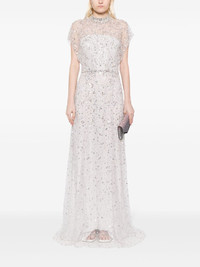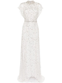 Crystal Drop gown Jenny Packham's Raquel dress shows the brand's glamour and exquisite craftsmanship. Boasting a fluid long-length it is adorned with multiple crystal embellishments throughout in a silver-tone. Highlights - Light grey - Crystal embellishment - Transparent panel detail - Round neck - Short sleeves - Fluid - Concealed rear zip fastening - Floor-length Imported Composition Polyester 100% SIZE & FIT Model measurements Height 5 ft 9 in(1.76 m) Bust/Chest 31.1 in(79 cm) Hips 35.03 in(89 cm) Waist 24.4 in(62 cm) FittingInformation Designed for a close fit at the chest and waist with a loose fit at the hip Made from a midweight non-stretch fabric This piece fits true to size – take your usual size Washing instructions Dry Clean Only