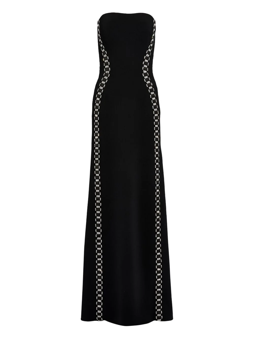 crystal-embellished strapless maxi dress Highlights - Black - Strapless neckline - Crystal embellishment - Floor-length skirt - Concealed zip fastening Imported Composition Polyester 92%, Polyurethane 8% Washing instructions Dry Clean Only