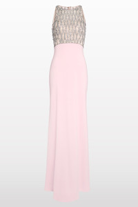 Sleek sophistication meets intricate embellishment in Dewdrop, a striking gown designed for modern elegance. This full-length dress features an embellished bodice, adorned with intricate crystal embroidery that forms a delicate, mesh-like effect across the upper body. The high neckline and racer-style cut lend a contemporary, athletic-inspired edge, offering structure and contrast to the soft sparkle. Below, the skirt flows in a smooth, uninterrupted column, creating a clean, minimalist silhouette that balances the ornate detailing above. The thoughtful juxtaposition of textures makes this gown a standout option for evening events that call for originality and poise. Ideal for modern weddings, art gallery openings, or fashion-forward black-tie affairs, Dewdrop captures attention without overwhelming. Whether styled with sleek hair and bold earrings or kept minimalist with understated heels, this gown delivers sharp glamour for those with an eye for detail.