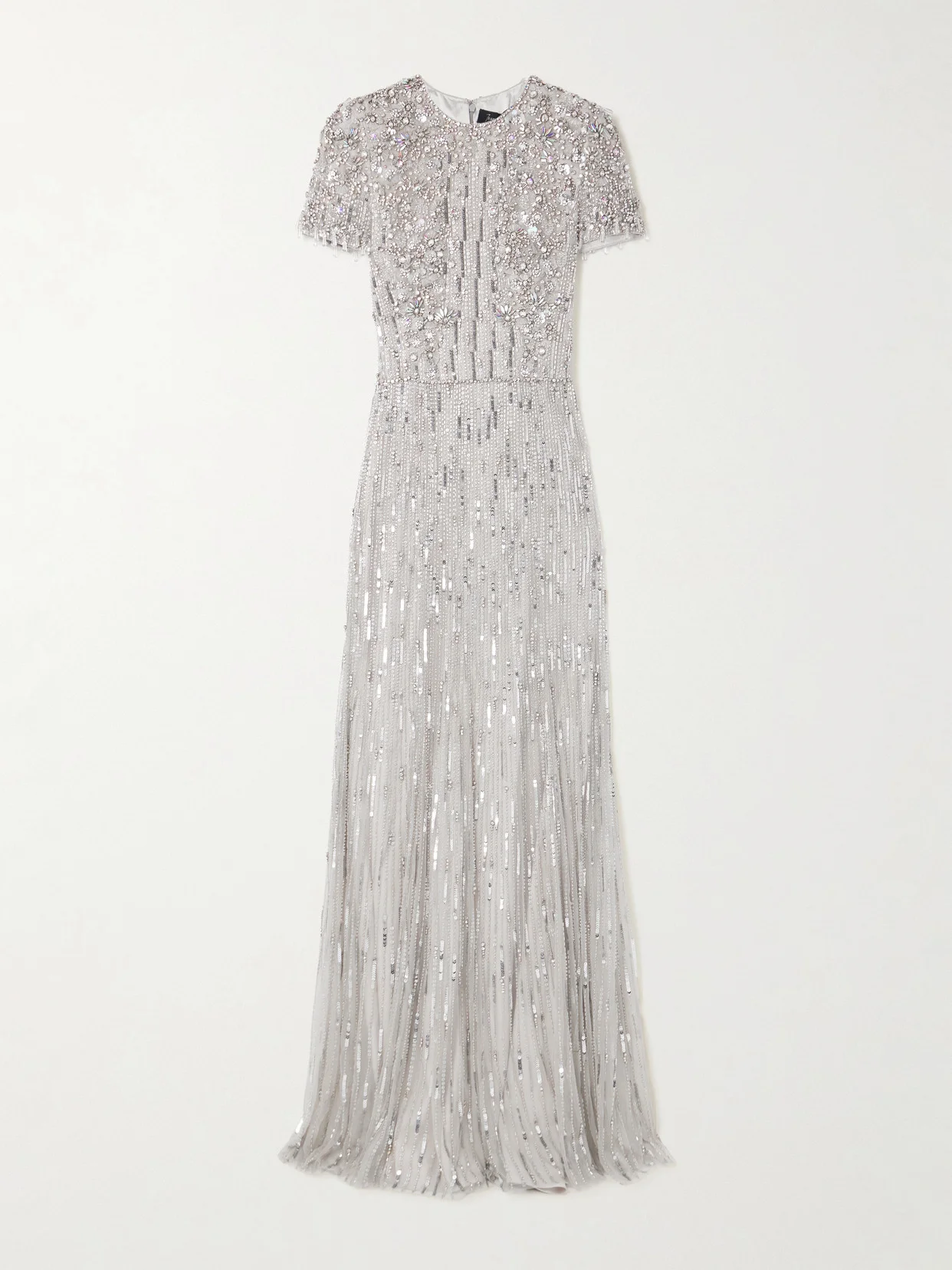 There's good reason so many incredible women turn to Jenny Packham when dressing for life's biggest moments. This 'Eliza' gown is handmade from airy tulle, saturated with glinting bead and sequin embellishments that catch the light at all angles. The lightly gathered skirt sways beautifully as you move.