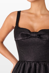 Elosie is a refined and elegant midi dress designed for sophisticated occasions where style and structure meet. Featuring a sculpted bodice with a dramatic bow detail at the neckline, this dress strikes a perfect balance between playful femininity and polished tailoring. Wide straps offer supportive structure while a softly gathered skirt adds graceful volume, creating a flattering A-line silhouette. Ideal for cocktail parties, engagement dinners, or formal receptions, Elosie’s timeless charm lies in its attention to detail and elegant simplicity. The midi length makes it a versatile piece for semi-formal events, while the statement neckline adds visual interest. With its structured lines and ladylike silhouette, this midi bow dress embodies classic elegance with a contemporary twist.