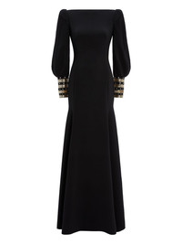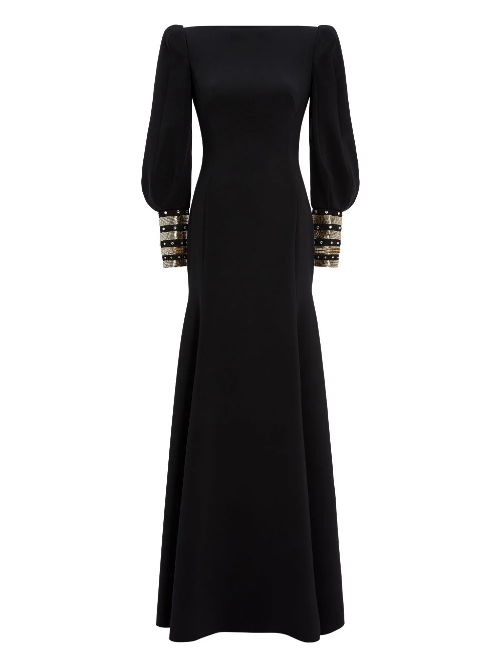 embellished-cuffs puff-sleeve maxi dress Highlights - Black - Long puff sleeves - Embellished cuffs - Flared skirt - Boat neck Imported Composition Polyester 92%, Polyurethane 8% Washing instructions Dry Clean Only