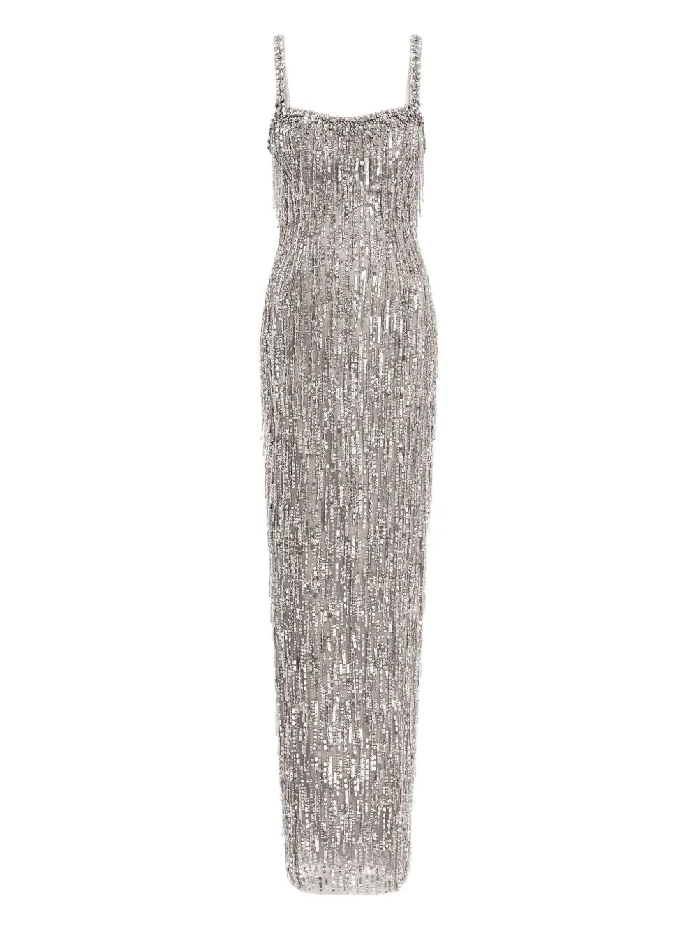 Fleur embellished maxi dress Highlights - Grey - Rhinestone and sequin embellishment - Beaded fringe - Square neck - Sleeveless - This piece features very delicate detailing. handle with extreme care to avoid damage such as broken feathers or loss of sequins. Imported Composition Plastic 100%, Nylon 100% Washing instructions Read Manufacturer Guidelines