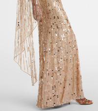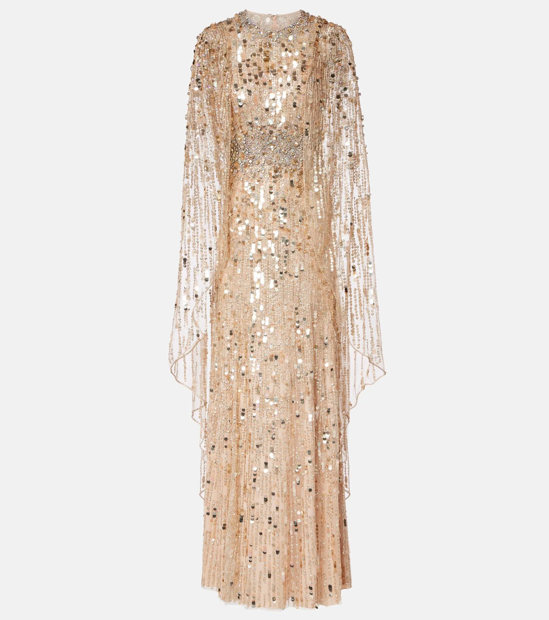 Enriched with romance, Jenny Packham’s intricately embellished designs are made to make an entrance. The Honey Dew gown features cape-effect sleeves and is encrusted with shimmering sequins and dazzling crystals for a celestial finish. Product Details - Material: 100% nylon - Care instructions: dry clean - Made in India - Color: pink - Designer color name: Illusion - Item color: pink - Lining: 100% polyester - Closure: concealed zipped back - Item number: P01117619 Size & Fit - True to size - Fitted - Loose outer layer - Non-stretchy fabric - The model seen in the picture is 178cm-5'10" and wearing a size UK 8
