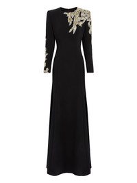 Honor beaded leaf-embellished gown Highlights - Black - Beaded leaf design - Long sleeves - Round neckline Imported Composition Polyester 92%, Polyurethane 8% Washing instructions Dry Clean Only