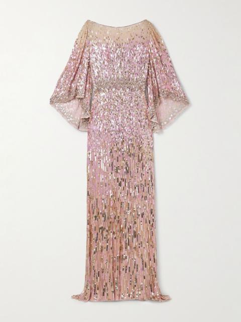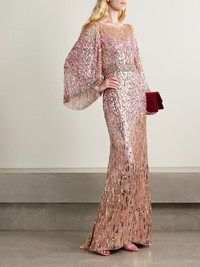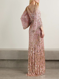 Jenny Packham's glamorous eveningwear is fit for the red carpet and often spotted there. This 'Ines' gown is made from tulle drenched in glittering sequins, crystals and paillettes and has a full satin lining. Size & Fit - Fits true to size, take your normal size - Those with a curvy figure may wish to take the next size up - Designed for a slim fit - Weighted, heavily embellished, non-stretchy fabric - Model is 180cm/ 5'11" and is wearing a UK 8 Details & Care - Beige tulle - Concealed hook and zip fastening at back - 100% nylon; lining: 95% polyester, 5% elastane - Fully lined - Specialist clean