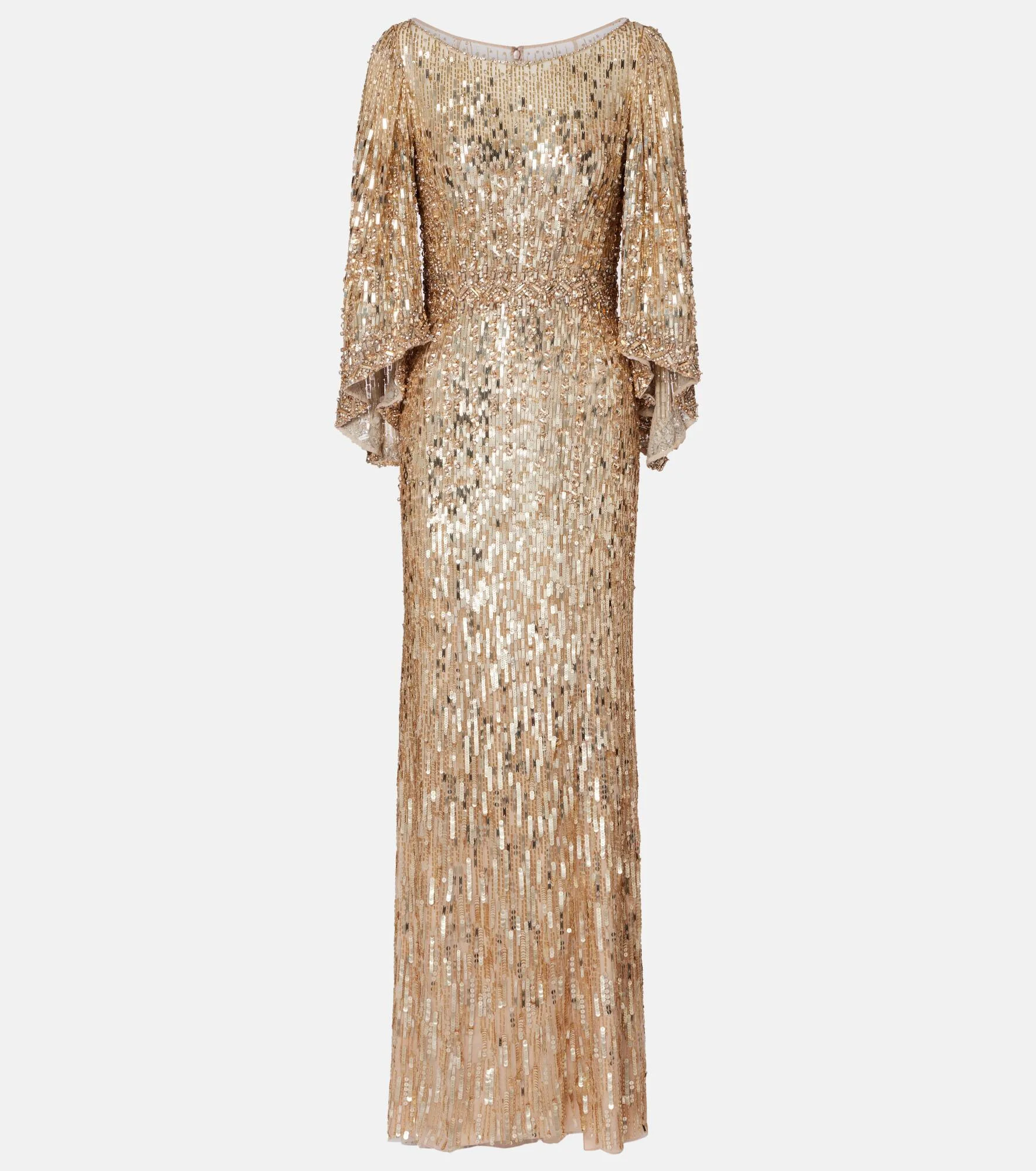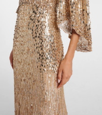 Dramatic in the best way possible, the Ines gown from Jenny Packham is primed for high-profile events or black-tie events alike. Adorned with shimmering sequins all over, this style features voluminous sleeves and a cinched waist, creating a flattering silhouette. Product Details - Material: 100% nylon - Care instructions: specialist clean - Made in India - Designer color name: Illusion/Gold - Item color: gold - Lining: 100% polyester - Closure: zipped back - Item number: P01048217 Size & Fit - True to size - Ideal fit for larger bust sizes - Cinched waist - Non-stretchy fabric - The model seen in the picture is 178cm-5'10" and wearing a size UK 8