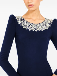Jacquetta embellished midi dress Highlights - Midnight blue - Embellished neck - Long sleeves - Zip fastening Imported Composition Polyester 92%, Polyurethane 8% Washing instructions Dry Clean Only