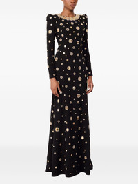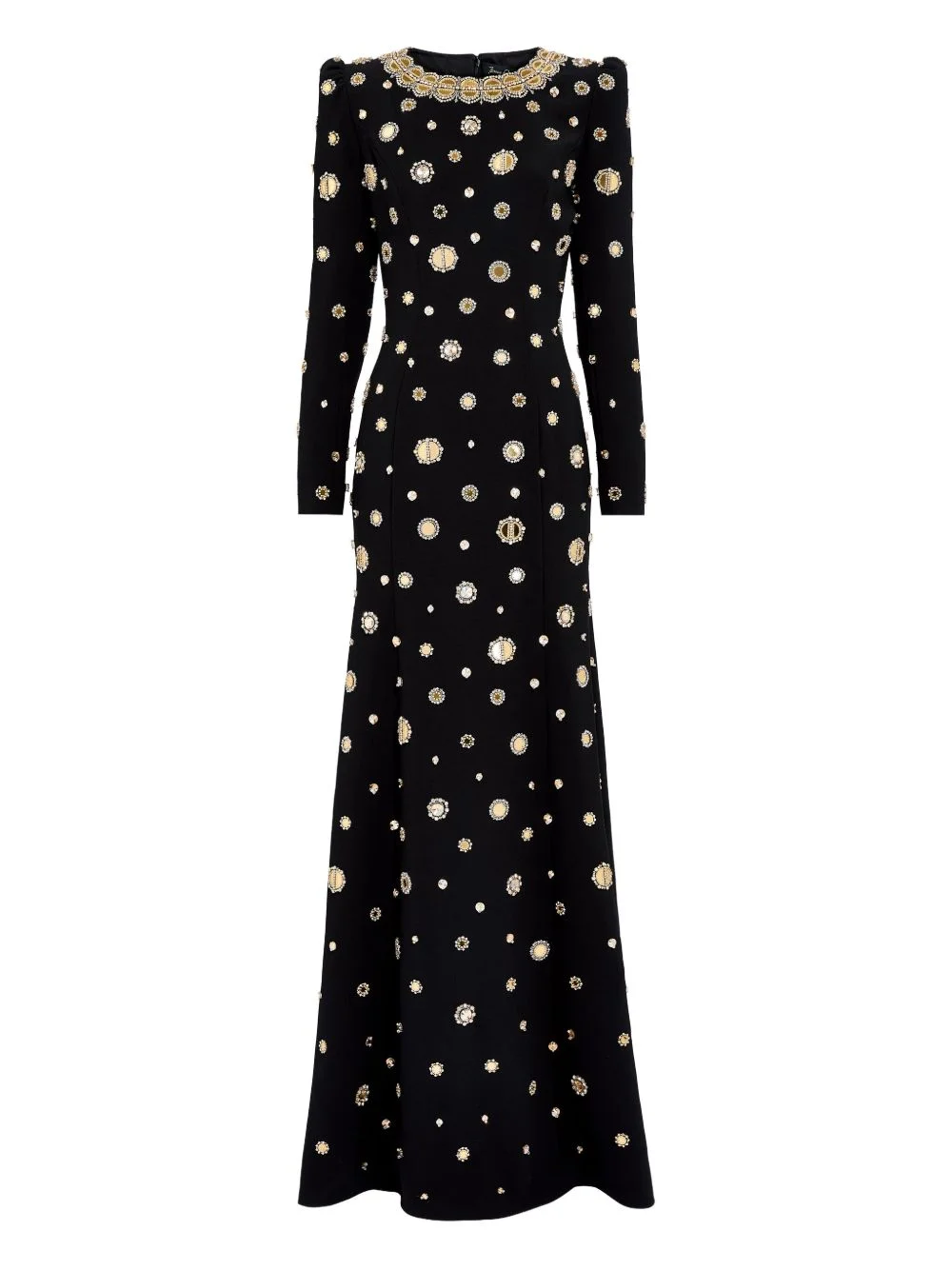 mirror-embellished puff-shoulders maxi dress Highlights - Black - Mirror embellishments - Puff shoulders - Long sleeves - Round neck Imported Composition Nylon 100% Washing instructions Dry Clean Only