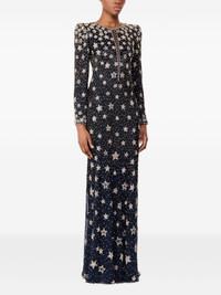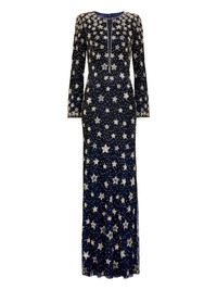 star-embellished maxi dress Highlights - Dark blue - Star embellishment - Long sleeves - Round neck - Shoulder pads - Floor-length Imported Composition Nylon 100% Washing instructions Read Manufacturer Guidelines