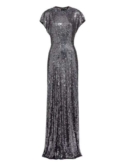 Odisha sequinned gown Highlights - Pink - Sequin embellishment - Short sleeves - Crystal embellished collar Imported Composition Nylon 100% Washing instructions Read Manufacturer Guidelines