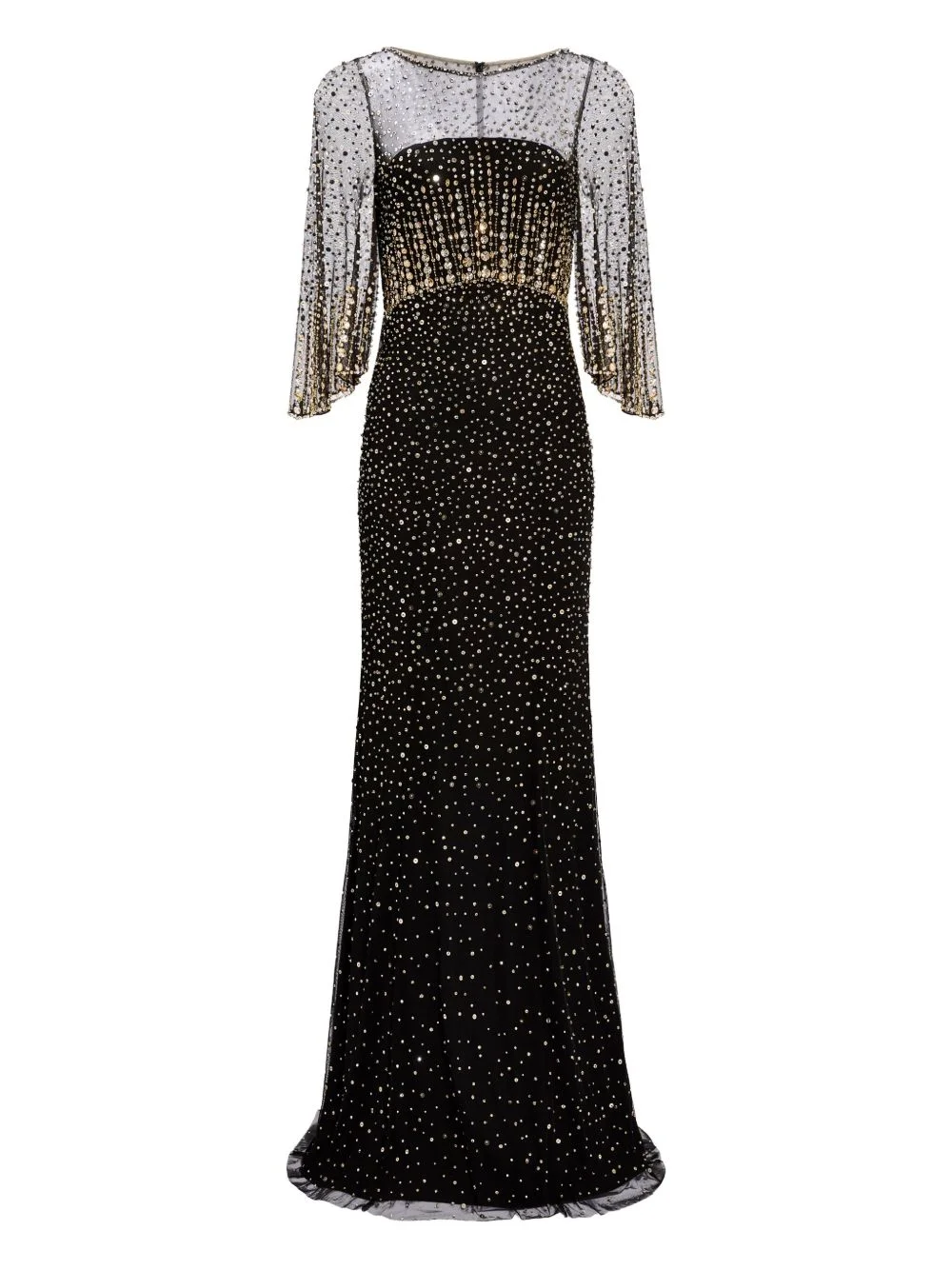 Kiya maxi dress Highlights - Black - Sequin embellishment - Flared sleeves - Boat neck - Rear zip fastening - Floor-length Imported Composition Nylon 100% Washing instructions Dry Clean Only